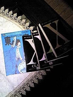 全て半分以下の値下げになっていました。目当てにしてた『東京バビロン』が一冊しか無かったのは、少し悲しい……。左端の青いヤツです。いきなり5巻です。でも短編形式なので、少なくともいきなり8巻を購入した『X』よりは話の理解度が良いです。なーんで『X』はいきなり8巻から買ったのかというと……べっつに決して1巻が無かったという訳ではないんですよー。たまたまです、たまたま。ふふっ。(追求御免)